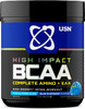 USN Complete Amino & EAA Intra Workout Powder, Blue Raspberry Flavour - 400g, Vegan Energy Drink, Premium BCAA Amino Acids & Glutamine Recovery Drink, High Impact Pre Workout & Post Workout Shake