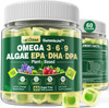 Vegan Omega 3 6 9 Supplement, Sugar Free Algae Omega 3 Gummies Fish Oil Alternative Dha Epa Dpa For Women & Men & Kids, Plant-Based Omega 3 Fatty Acids For Brain, Joint, Eye, No Fishy Taste, 60 Counts