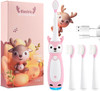 Vekkia Toddler Electric Toothbrush For Age 3+, 3 Memory Modes With Led Light, Toddler Toothbrush With Deer Shape And 2-Min Brushing Timer, 4 Soft Bristles(Pink)