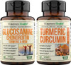 Vimerson Health Glucosamine Chondroitin + Turmeric Curcumin 2-Bottle Supplement Bundle. Occasional Joint Discomfort Relief, Inflammation Balancing And Antioxidant Properties. Immune Support