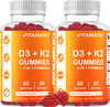 Vitamatic 2 Pack Vitamin D3 K2 Gummies - 60 Count - Supports Healthy Bone, Heart & Calcium Absorption, & Immune Health - Plant Based, Non-Gmo, Gluten Free