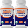 Vitamatic 2 Packs Caffeine Pills With L-Theanine - 300 Mg Per Tablet - 120 Vegetarian Tablets - Nootropic Supplement For Focused Energy (Total 240 Tablets)