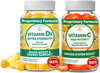 Vitamin D3 And Vitamin C Gummies Bundle - Non-Gmo, Gluten Free, No Corn Syrup, All Natural Supplements- 60 Ct Vitamin D3 Gummies And 60 Ct Vitamin C Gummies - 30 Days Supply