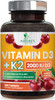Vitamin D3 K2 As Mk-7 With 2000Iu Of D3 & 75Mcg K2, Vitamin K2 D3 Bone Strength Supplements Support Calcium Absorbtion For Teeth & Bone Health + Muscle & Immune Health Support - 180 Chewable Tablets180 Count (Pack Of 1)
