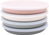 Weesprout Bamboo, Silicone, Melamine Dishware Plate With Lids, Set Of 4, Kid-Sized Design For Leftovers, Dishwasher Safe (Pink, Green, Gray, And Beige)