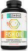 Zhou Nutrition Fish Oil, Max Strength Omega 3 Fish Oil, 1250 Mg With Epa And Dha, Purified, Sustainably Sourced Fish Oil, Heart, Joint And Brain Health, Burpless Softgels, 120 Servings