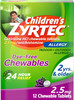 12-Count Pack Of Children'S Zyrtec 24 Hour Allergy Relief Chewable Antihistamine Tablets For All-Day Relief Of Allergy Symptoms In Just One Chew, Including Runny Nose, Sneezing, Itchy Watery Eyes, And Itchy Nose And Throat Allergy Relief That'S Easy To Take On The Go, Each Dye-Free Chewable Tablet Contains 2.5 Milligrams Of The Effective Antihistamine Cetirizine Hcl And Comes In A Kid-Friendly Grape Flavor Give Your Child Effective Temporary Relief Of Allergy Symptoms Due To Hay Fever, Seasonal And Other Upper Respiratory Allergies With This Dye-Free Kids Allergy Medicine Suitable For Children Ages 2+, The Kids Allergy Tablets Can Be Taken To Help Relieve Symptoms Of Both Indoor And Outdoor Allergies. Zyrtec Is The #1 Pediatrician Recommended Brand* For Children'S Allergies. *Among Otc Oral Antihistamines With Day And Night 24-Hour Relief, These Children'S Chewable Tablets Work Strong On Day One, And Stronger On Day Two For Powerful Relief All Season Long. Kids Chews Contain No Ingredient Made From A Gluten-Containing Grain (Wheat, Barley, Or Rye) Relieve Your Child'S Allergy Symptoms With Zyrtec 24 Hour Children'S Allergy Grape Chewable Tablets. Suitable For Kids Ages 2+, Each Chewable Allergy Relief Tablet Contains 2.5 Milligrams Of Antihistamine Cetirizine Hcl To Relieve Allergy Symptoms Including Runny Nose, Sneezing, Itchy & Watery Eyes, & Itchy Nose & Throat. These Kids Allergy Medicine Tablets For 24-Hour Relief Work Day & Night To Help Alleviate Symptoms From Both Indoor & Outdoor Allergies, Including Symptoms Due To Hay Fever & Other Upper Respiratory Allergies. This Allergy Medicine Is Dye Free & Comes In An Easy-To-Take Chewable Tablet With A Grape Flavor. Providing 24 Hours Of Relief In Just One Chew, These Children'S Chewable Tablets Work Strong On Day One, & Stronger On Day Two For Powerful Relief All Season Long. Zyrtec Is The #1 Pediatrician Recommended Brand* For Children'S Allergies. Kids Chews Contain No Ingredient Made From A Gluten-Containing Grain (Wheat, Barley, Or Rye). *Among Otc Oral Antihistamines